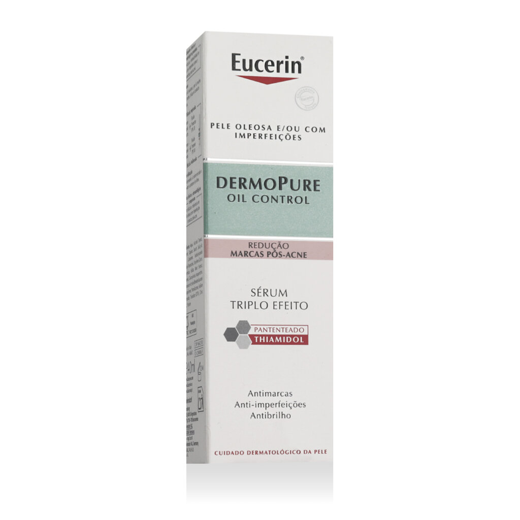 Eucerin DermoPure Oil Control Triple Effect Serum 40 ml ist ein hochwirksames Gesichtsserum, das speziell für die Bedürfnisse fettiger und zu Akne neigender Haut mit Pigmentflecken nach Akne entwickelt wurde. Mit einer Kombination aus drei wichtigen Inhaltsstoffen - Thiamidol, Salicylsäure und einer talgregulierenden Technologie - bekämpft es nicht nur Hautunreinheiten, sondern auch dunkle Flecken und das Erscheinungsbild glänzender Haut. Das Serum hat eine leichte, schnell einziehende Textur und ist für die tägliche Anwendung geeignet.