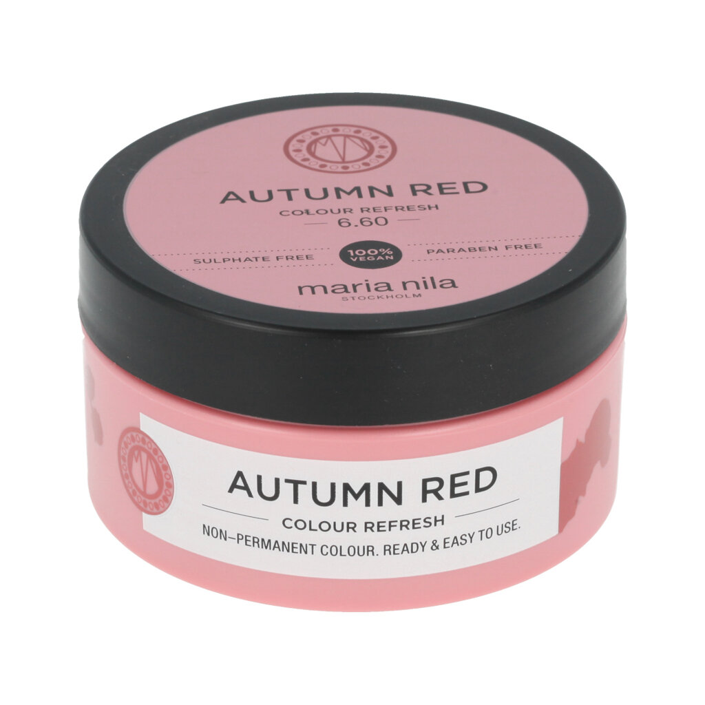 Maria Nila Colour Refresh Haarmaske mit Farbpigmenten Autumn Red 100 ml ist eine sanfte , pflegende Haarmaske mit Farbpigmenten, die die Farbintensität wieder auffrischt, Nuancen verstärkt oder es Ihnen ermöglicht, mit neuen Haarfarben zu experimentieren. Dank des enthaltenen Arganöls pflegt sie das Haar und macht es geschmeidig und glänzend, während sich die Farbe nach und nach auswäscht, so dass Sie sich keine Sorgen um einen dauerhaften Effekt machen müssen.
