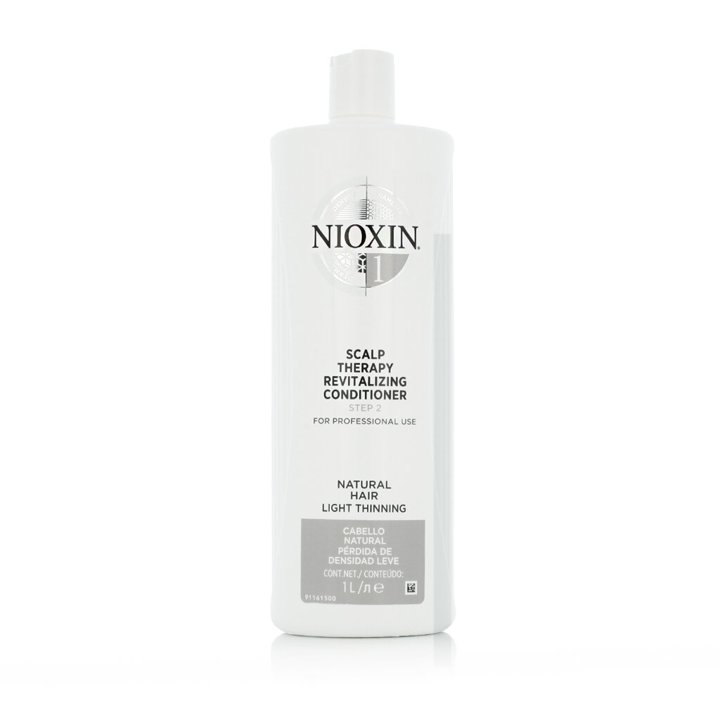 Nioxin System 1 Scalp Therapy Revitalising Conditioner 1 l ist eine leichte Pflegespülung für feines bis normales Naturhaar, das zu dünner werdendem Haar neigt. Dieser zweite Schritt des Nioxin System 1 Systems spendet Haar und Kopfhaut Feuchtigkeit, ohne das Haar zu beschweren. Angereichert mit der BioAMP-Technologie stärkt er die Haarfaser, verbessert ihre Struktur und fördert Haardichte und -volumen.